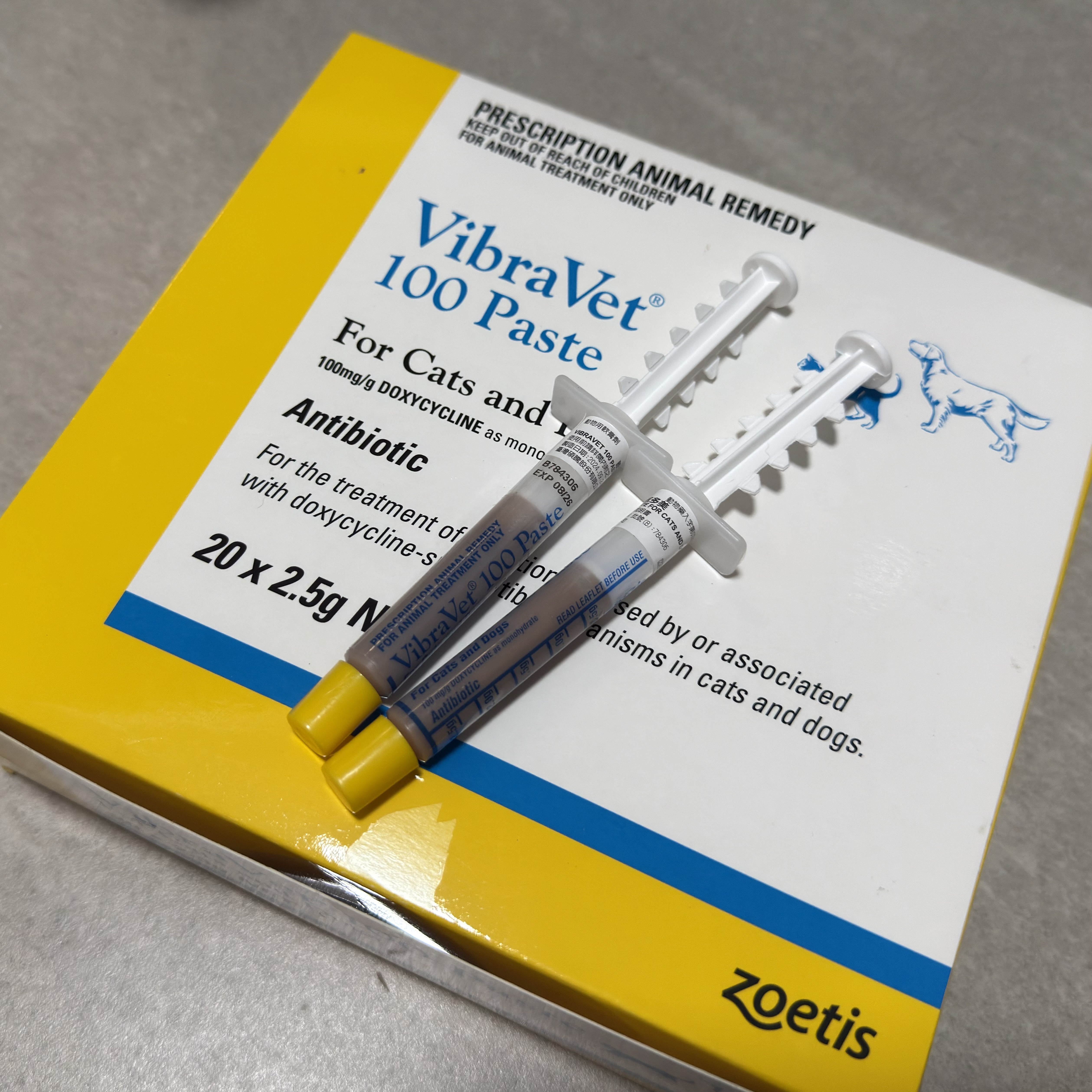 本品含有廣效性抗生素doxycycline,該成分屬於四環黴素(tetracycline)家族之抗生素。Doxycycline 具有多種特性,使其作為貓狗用廣效抗菌劑非常有效。